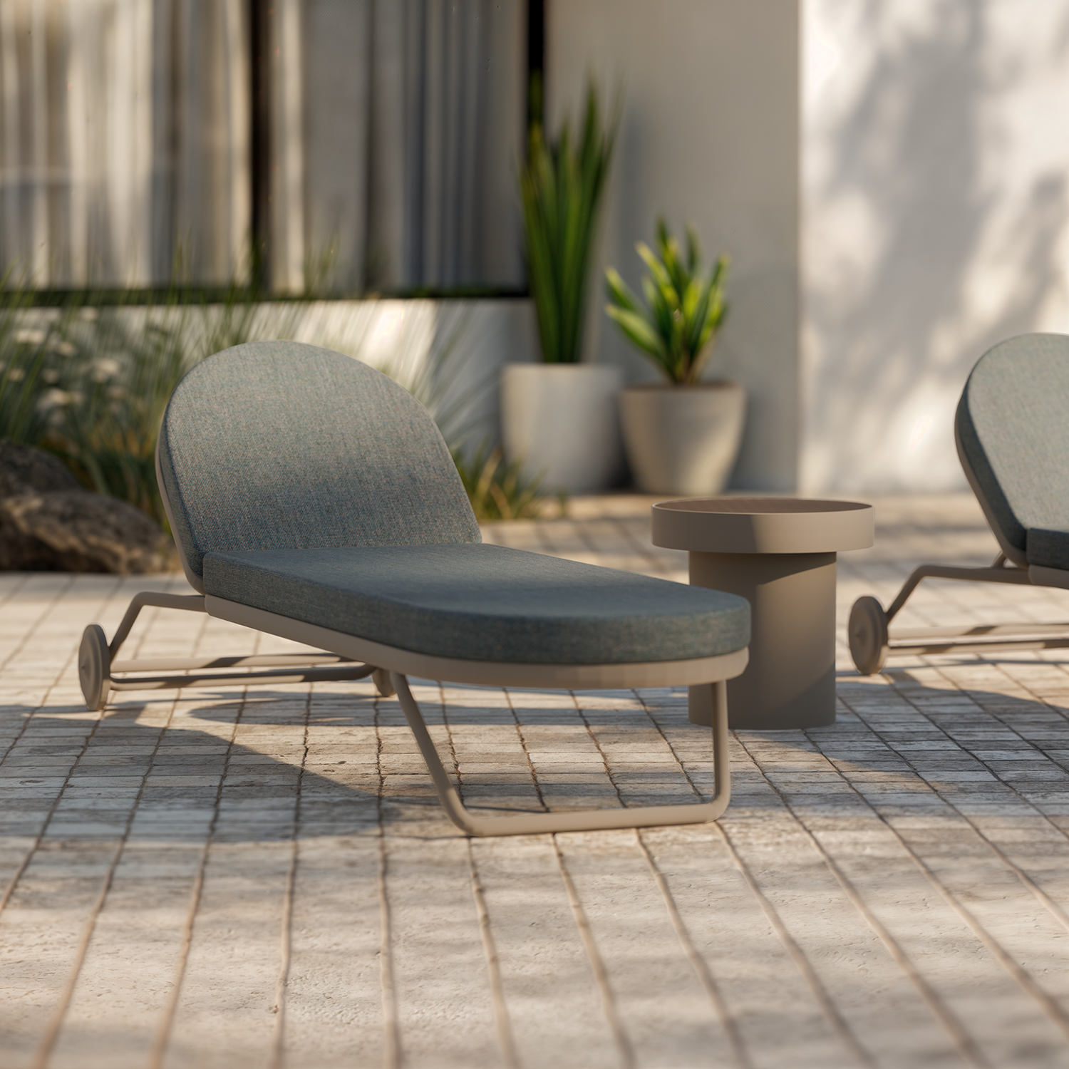ANKA is a sunbed that can be easily moved thanks to the large rear wheels.
