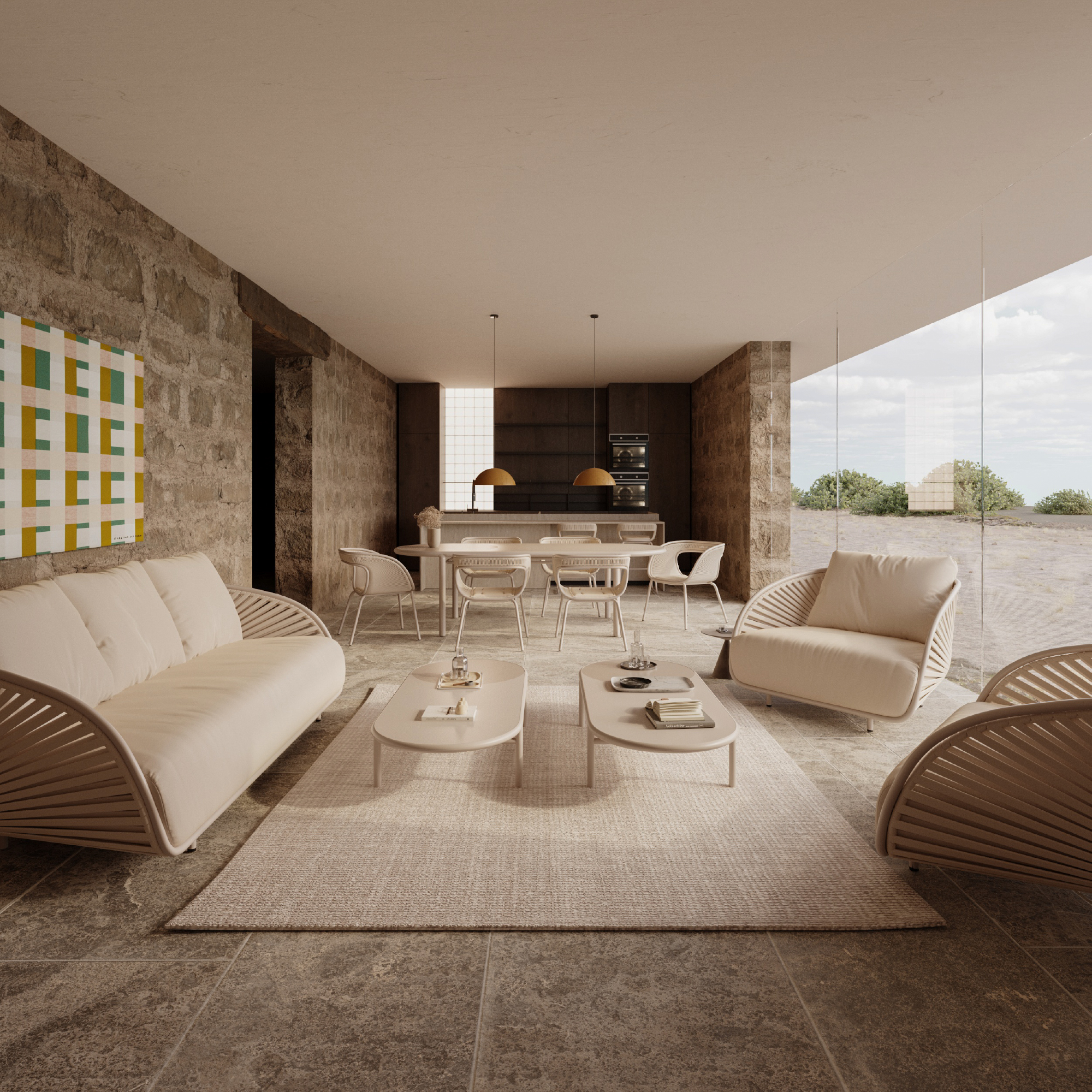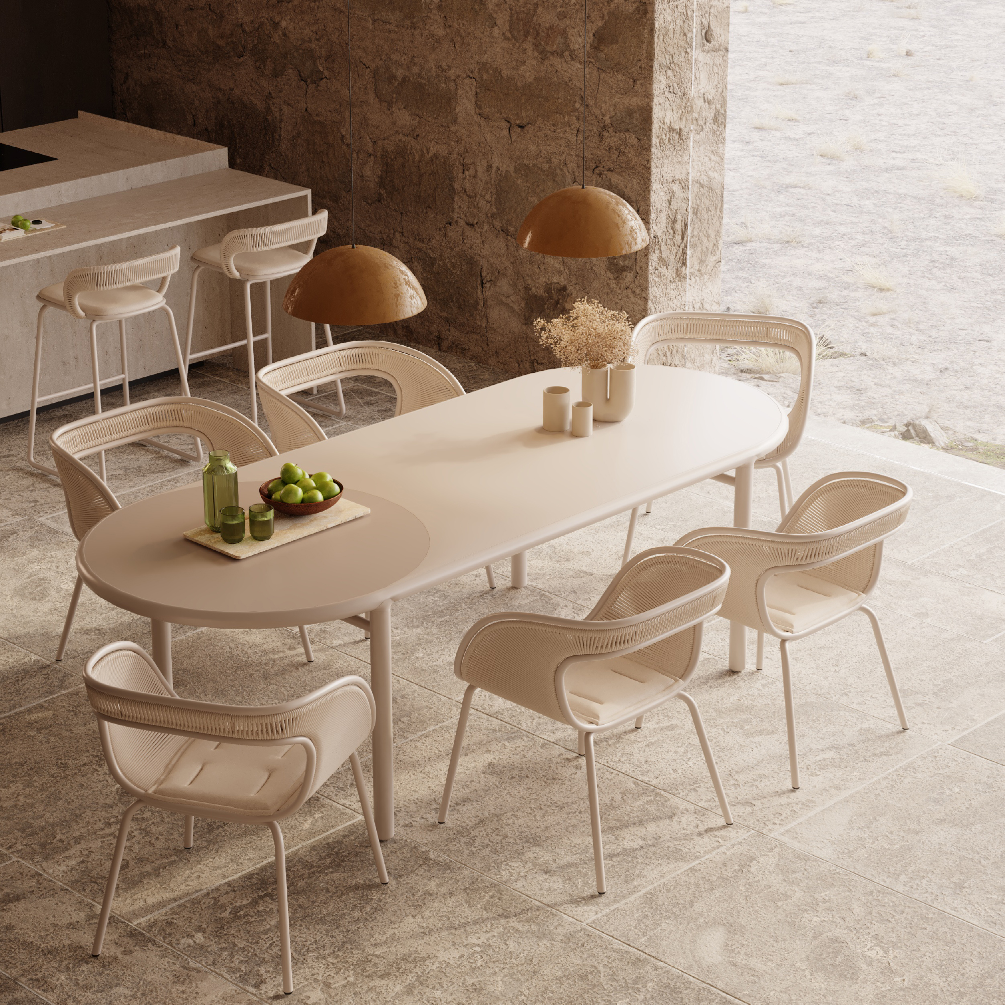 The Barla Collection offers endless style possibilities, thanks to the ability to play with the colors of the ropes and aluminum. In its monochromatic version, BARLA exudes sobriety and timeless elegance, with neutral tones that seamlessly blend into any environment. The purity of its lines and the simplicity of its forms are showcased in their full beauty, evoking a sense of calm and tranquility.