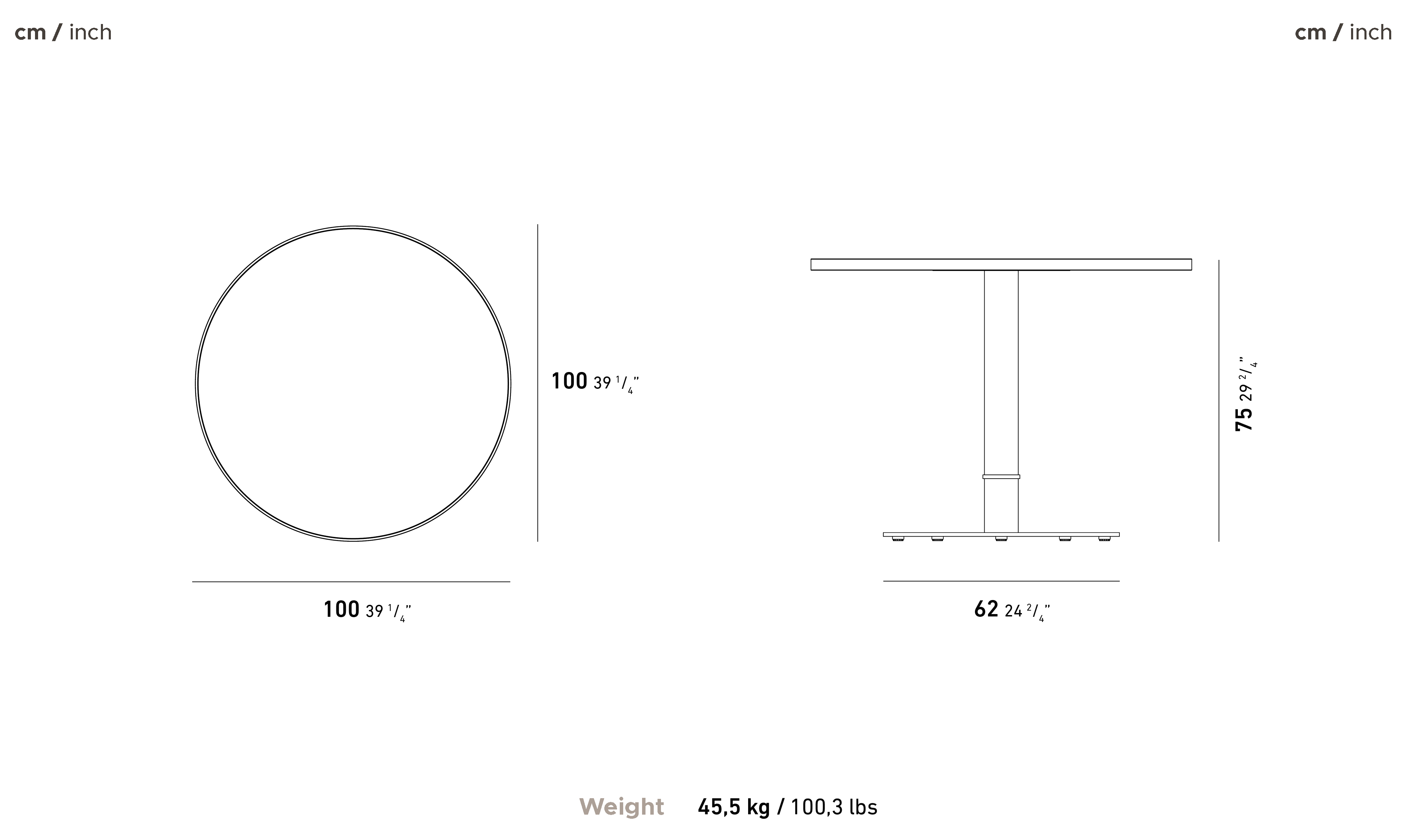 It is offered with 2 different foot types. Ø42 cm and Ø62 cm.