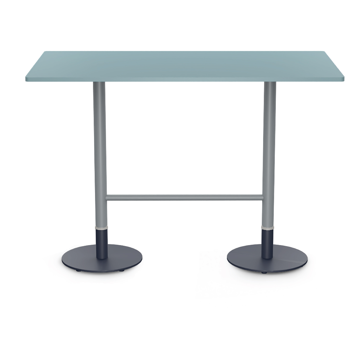 The table leg, which consists of 3 pieces, can be configured with different color combinations. The part that sits on the base is made of heavy-duty stainless material that is resistant to weather conditions. Aluminum, z-pact and paviment alternatives are available for the table.