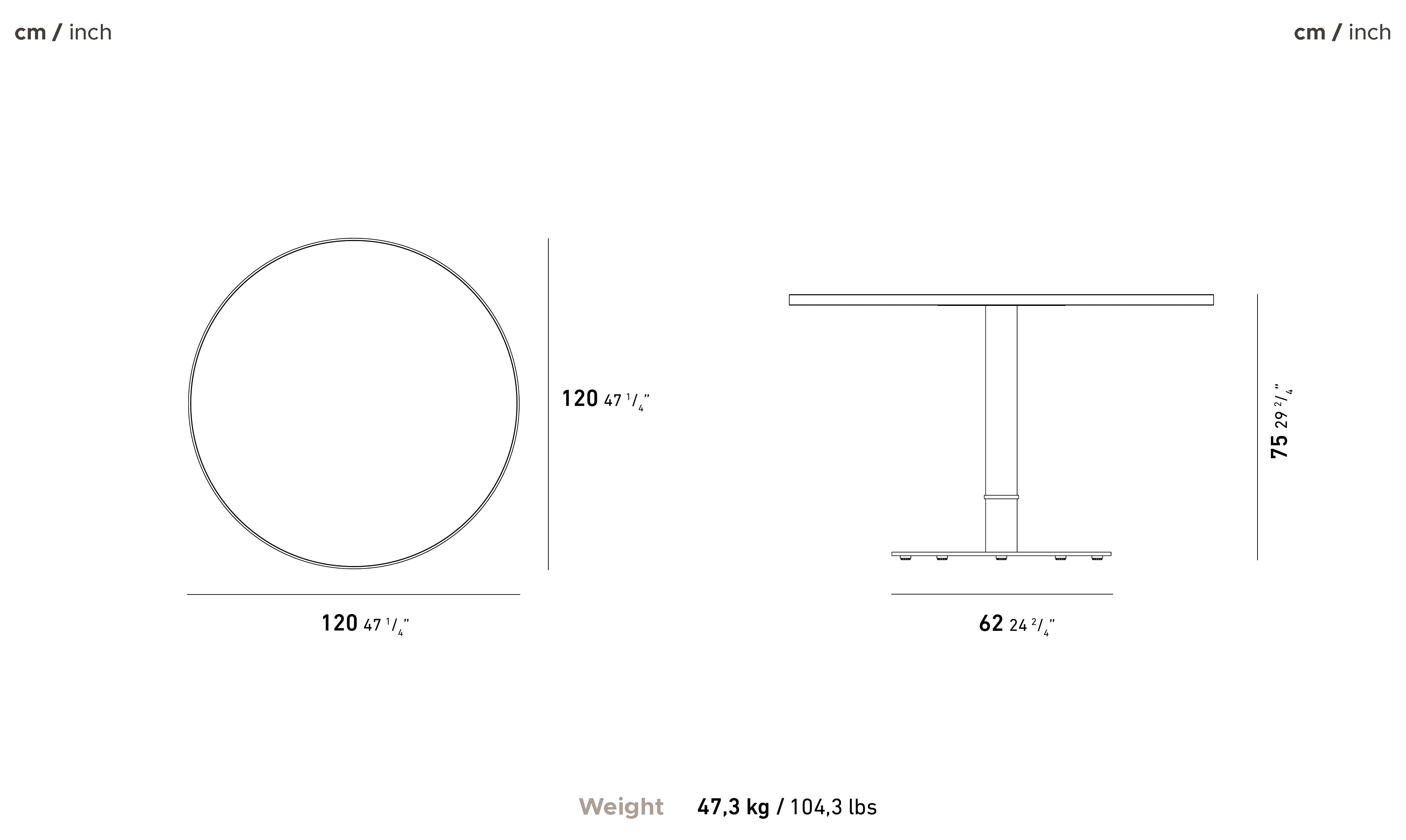 It is offered with 2 different foot types. Ø42 cm and Ø62 cm.