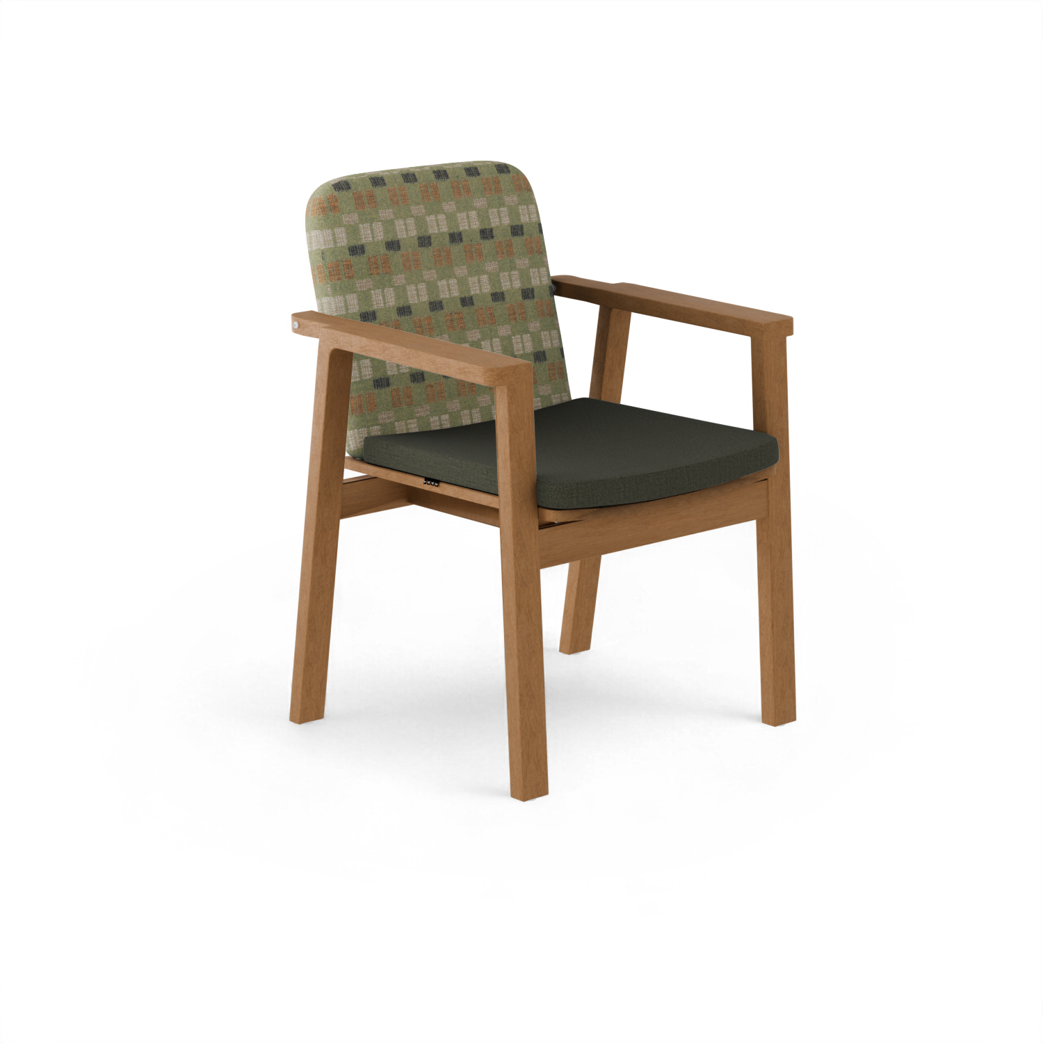 While its structure is produced from original teak wood, the back section, upholstered with fabrics and sponge suitable for outdoor applications, adds a new richness and comfort to the Denk Collection.
