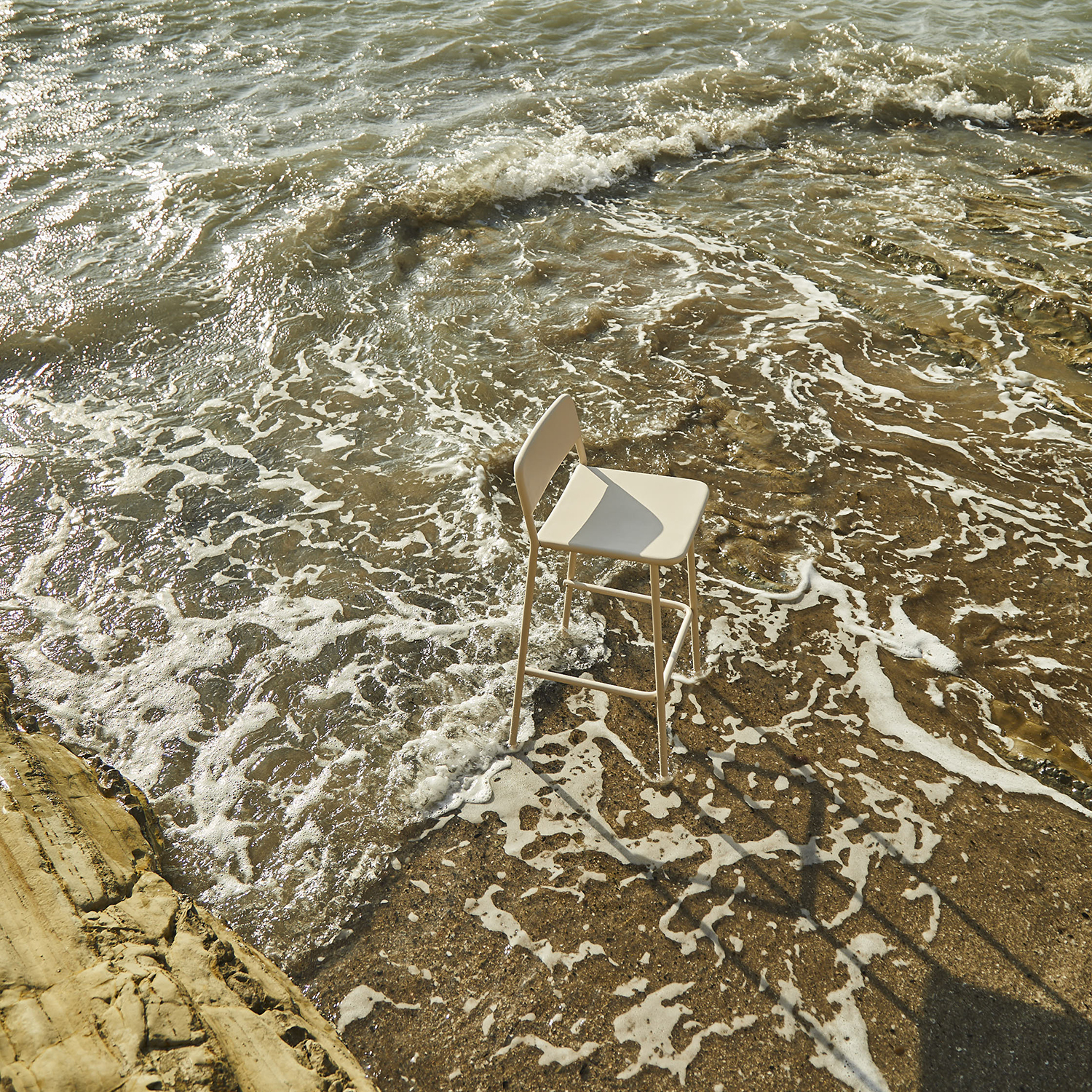 EDI stools can be made entirely of aluminum or with the backrest in original teak.