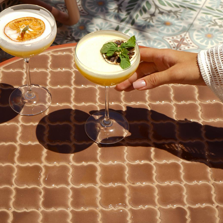 The overall structure of the coffee tables is made of aluminum and covered with handmade traditional porcelain.