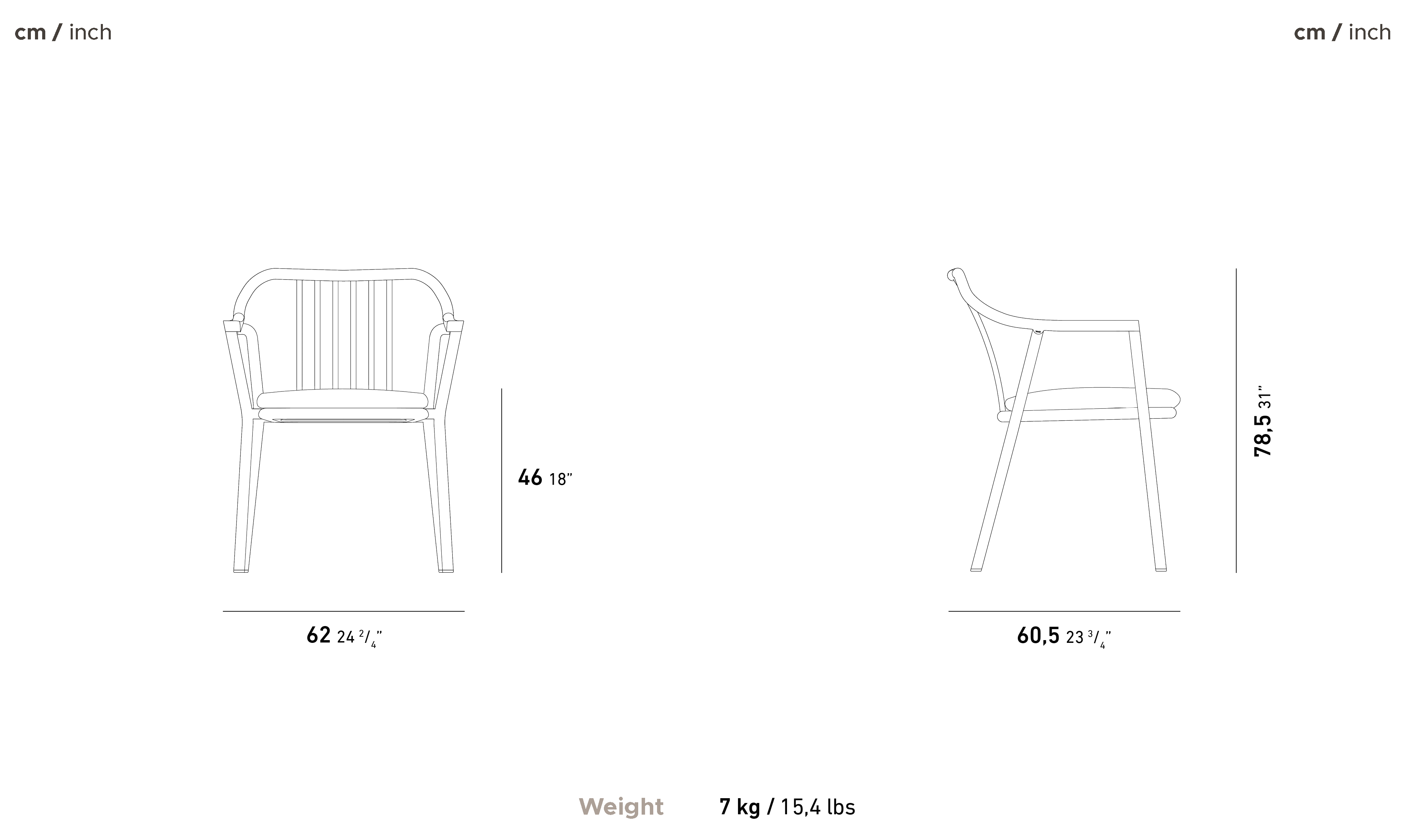 In addition to its entirely aluminum structure, the armrests are cast using a cast iron technique.