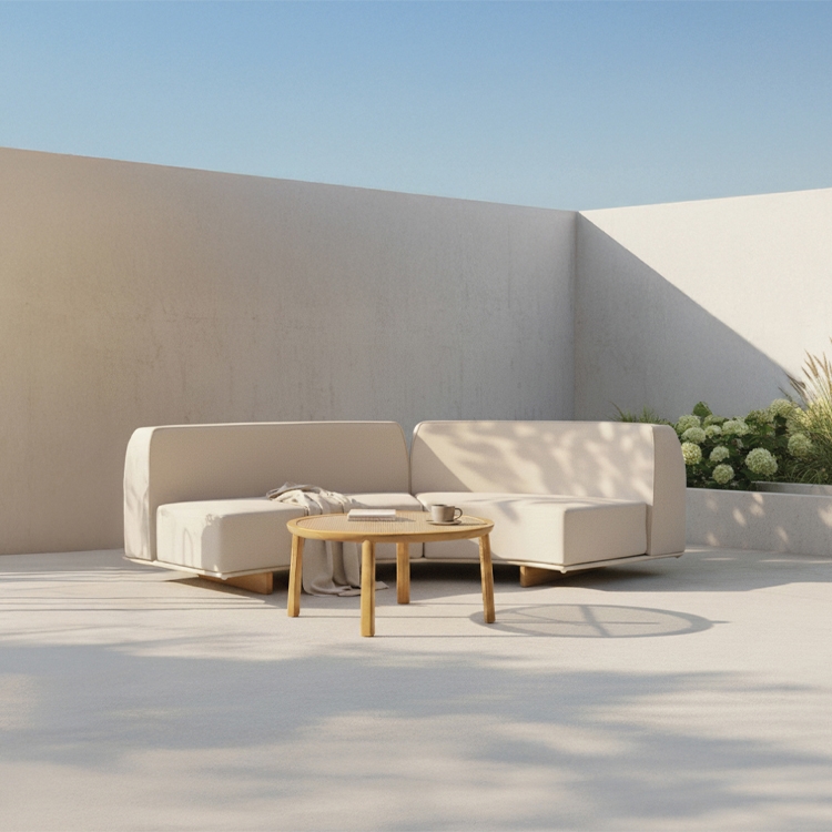 The sofa is made up of two distinct upholstered modules, allowing for a variety of configurations and combinations.