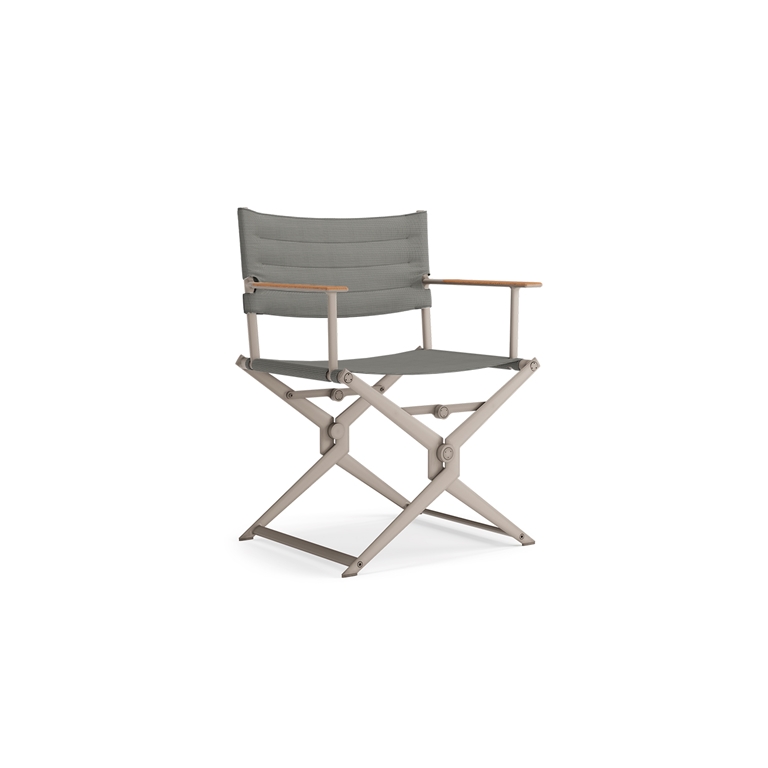 The functionality of saving space by making the chair foldable and therefore easily transportable and storable is brilliantly resolved by the die-cast aluminum which designs the opening and closing joint of the seat with great lightness.