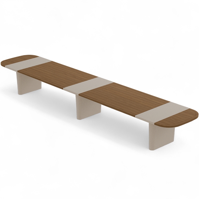 The connecting parts on the legs of SEMT tables made of natural teak wood; aluminum and fiber mixture casting material produced with a special molding method, is completed with sprayed concrete material that provides resistance to bad weather conditions and intensive use.