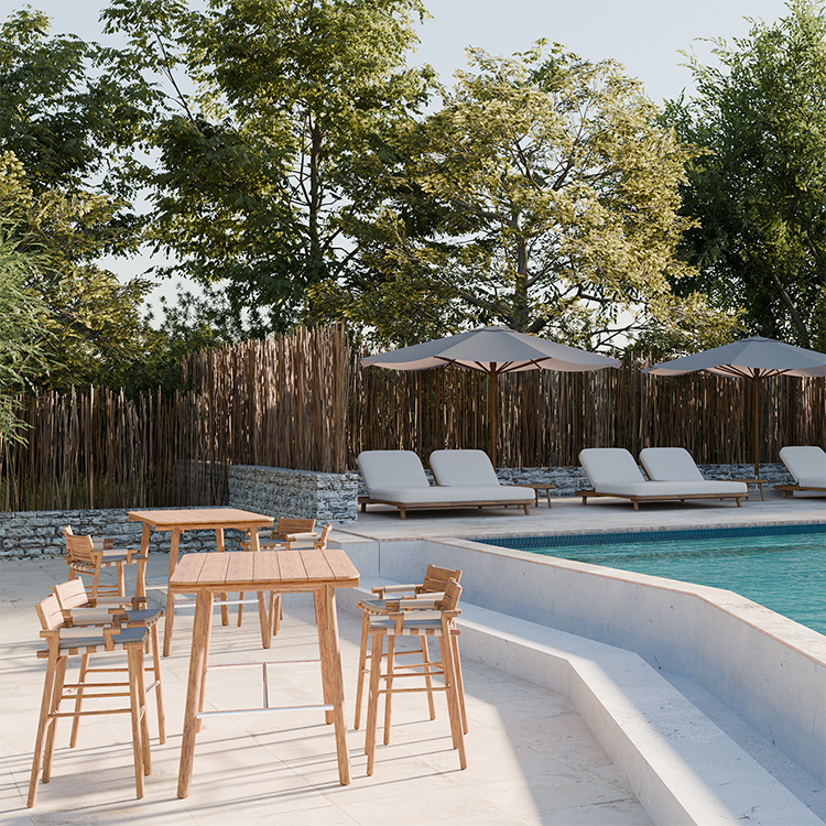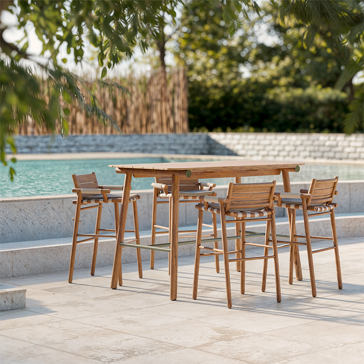 The structure is made of original teak wood, YAAZ ropes and tapes are used for outdoor applications. It is offered with its iconic structure and 2 different sizes. The cushions are completed with soft cushions with removable covers that contribute to the overall sense of comfort and relaxation.