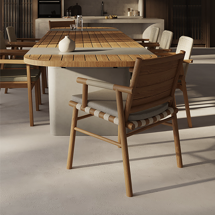 Structure is made of original teak wood, while YAAZ synthetic rope bands are used for outdoor applications. YAAZ rope is a yarn produced by the company that offers high protection against the sun and atmospheric agents.
