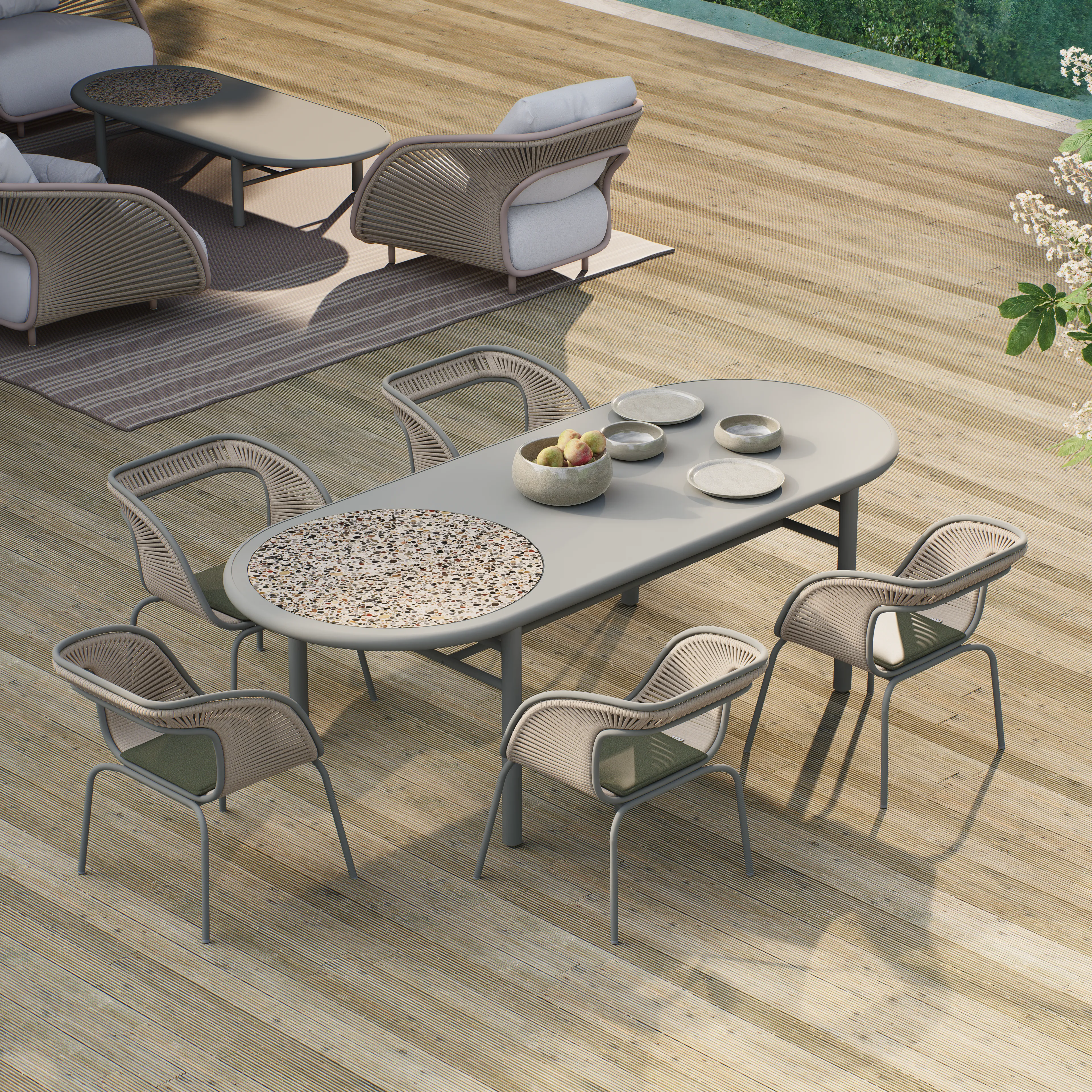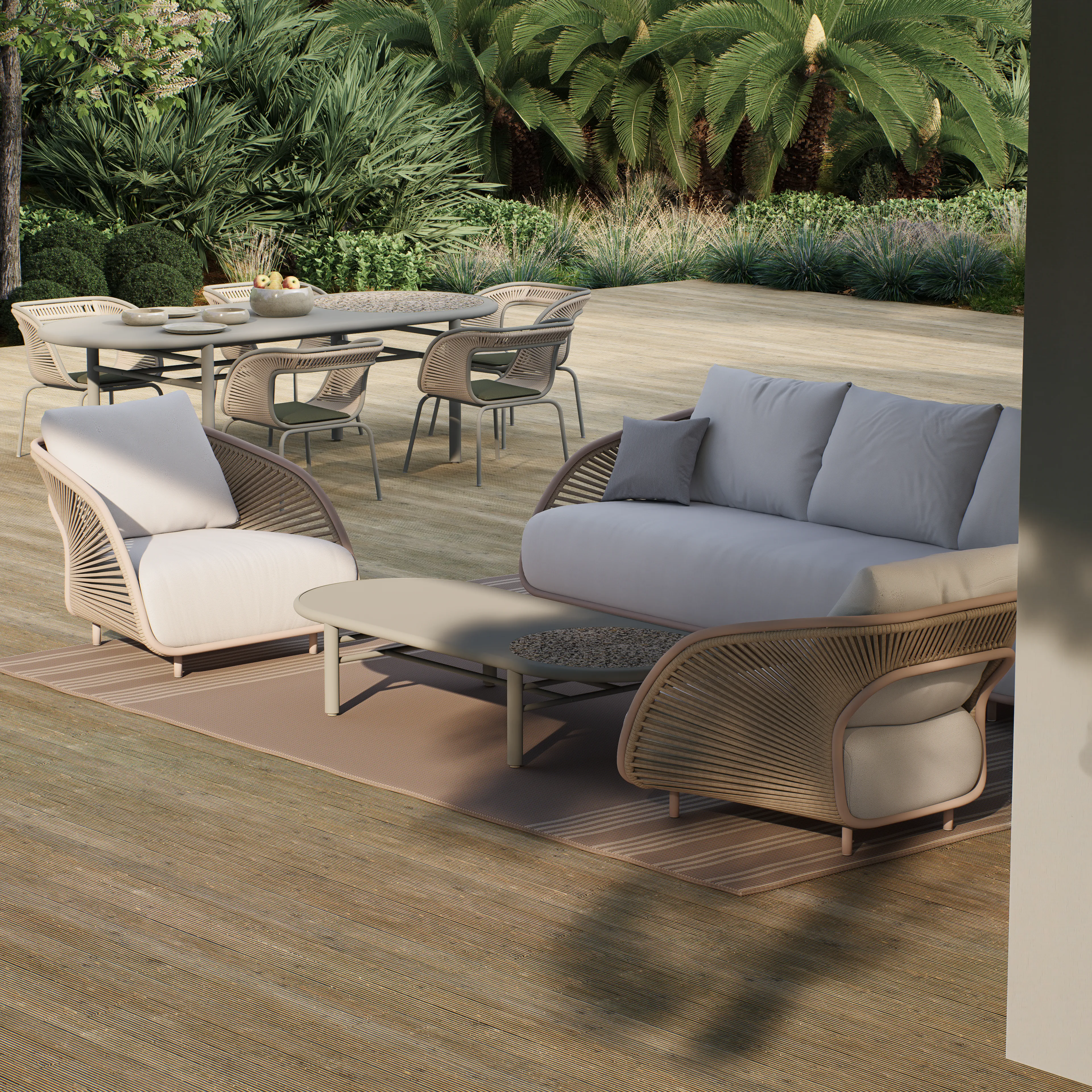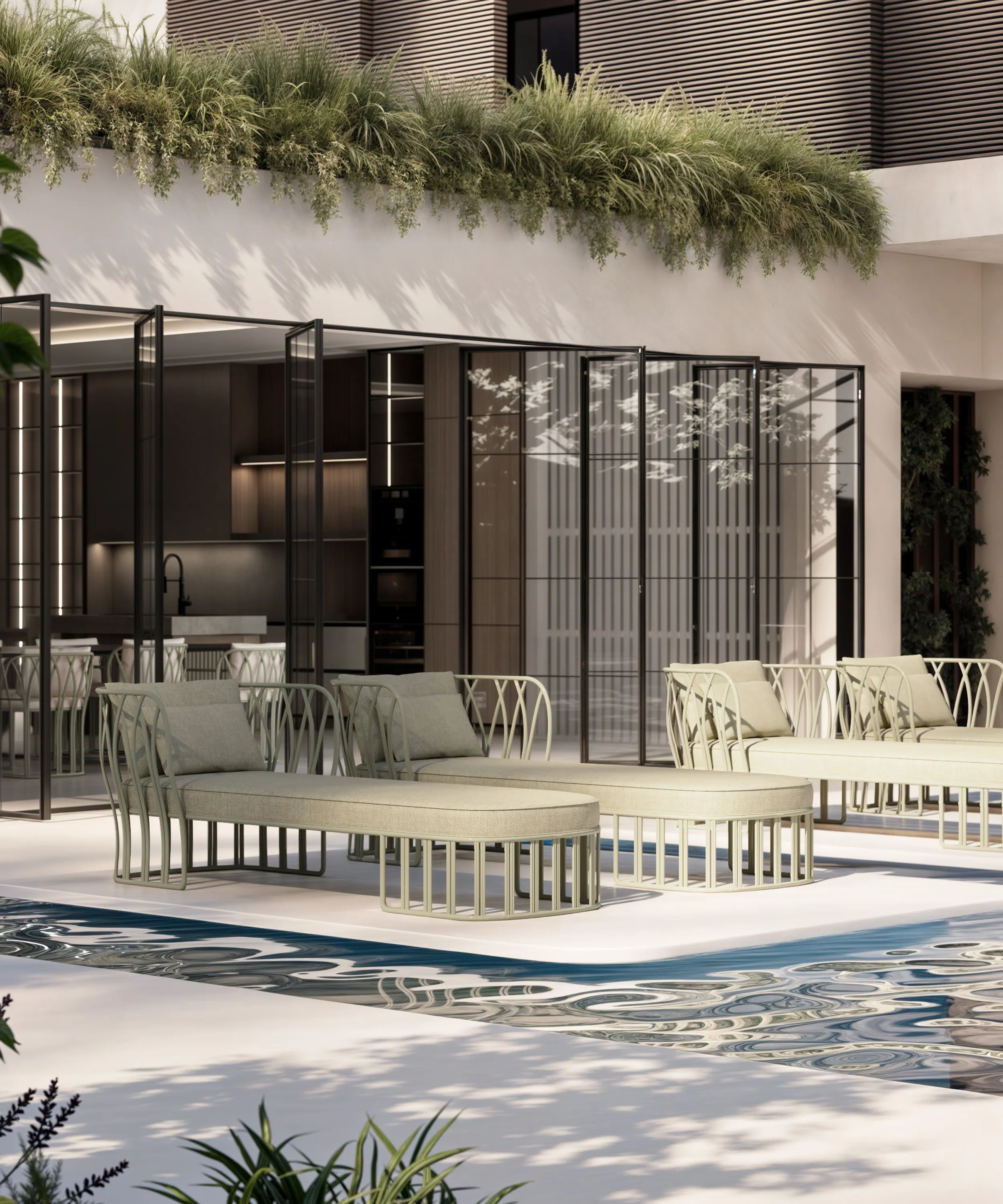 - KORU Collection: Mangiarotti's KORU collection for YAAZ is a prime example of this philosophy. Inspired by vintage wrought-iron garden chairs, the collection reinterprets slender aluminum rods to create elegant decorative patterns. KORU combines classic elegance with contemporary comfort, a powerful response to YAAZ's mission of "Seeking Beauty."