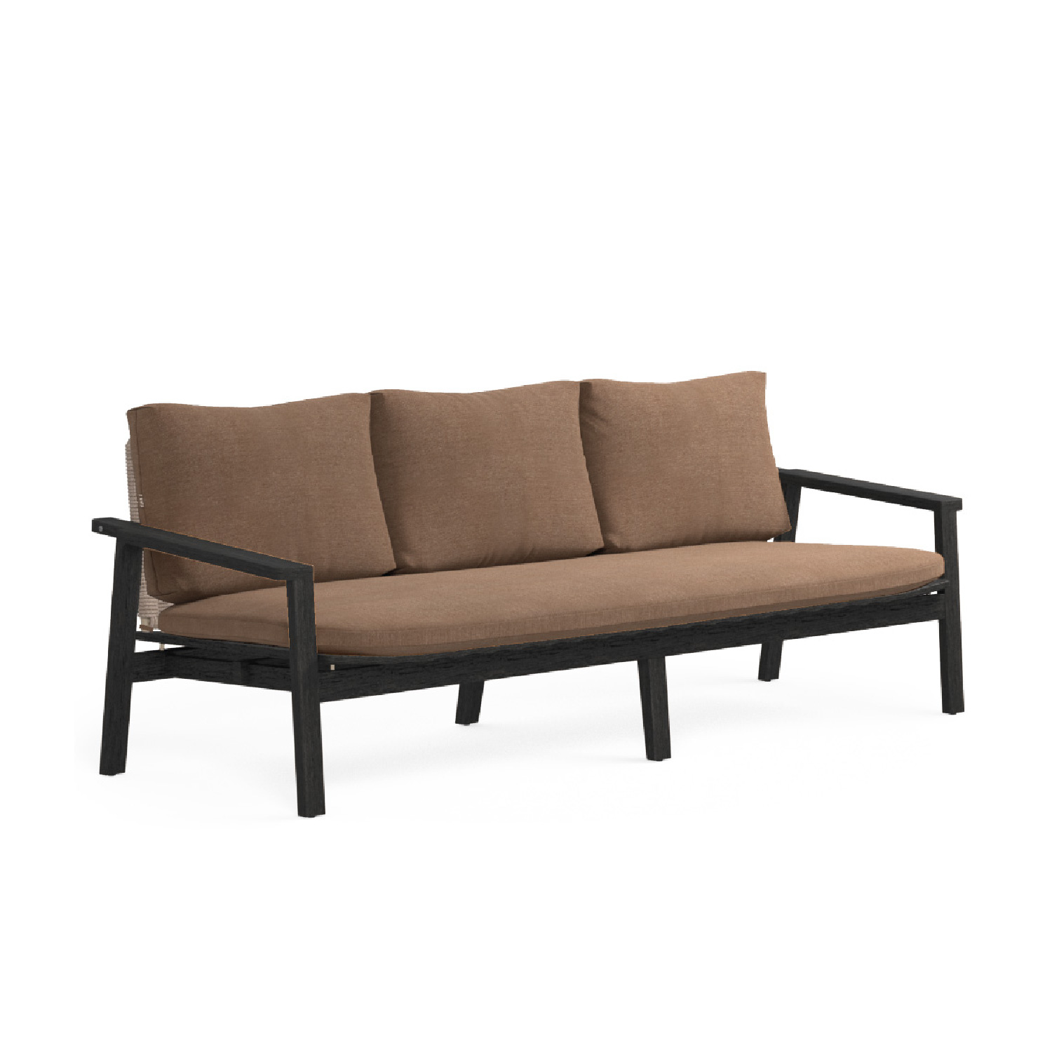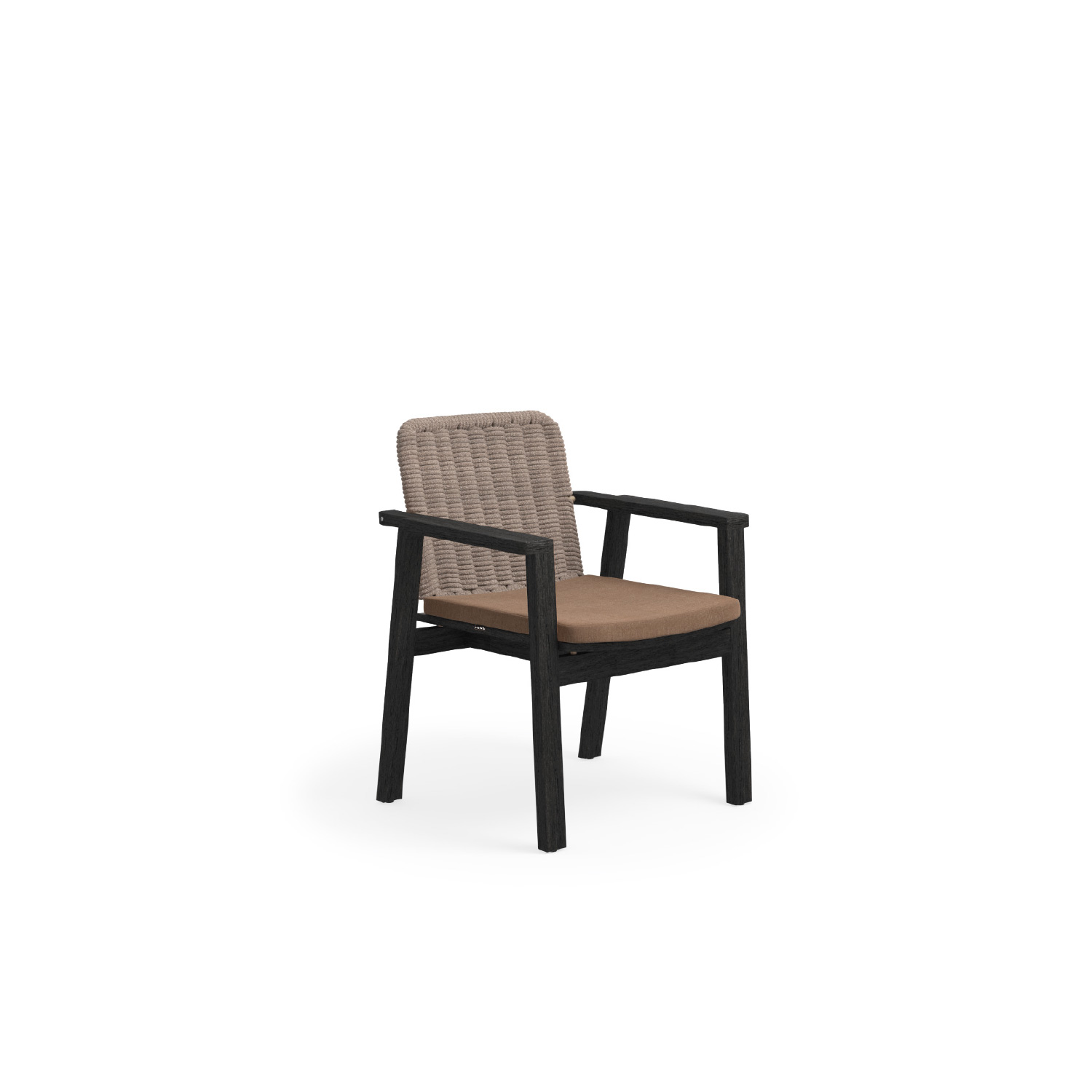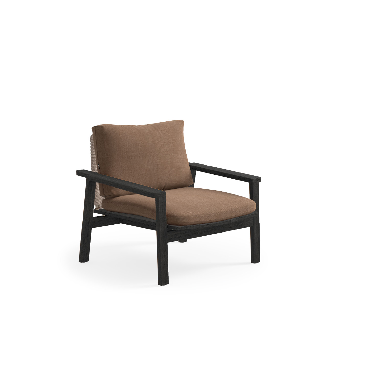 Made of precious teak wood, DENK presents itself as a seating line with generous volumes and large dimensions, composed of a chair, an armchair and a sofa. The essential form of the structureis enriched and embellished by the woven craftsmanship of the seatbacks which, particularly in the sofa,combine different elements: wood, fabric andropes. Thanks to these characteristics and the comfortable armrests, it can simplyand naturally be inserted in various architectural and housing contexts from the contract to the residential sector.