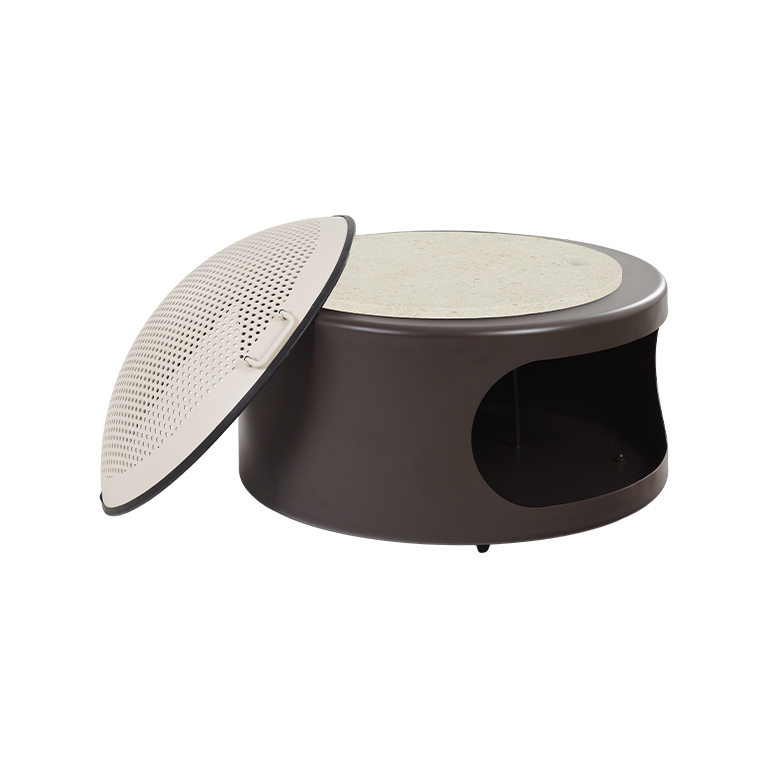 The grill cover can be made of ment, stainless steel or Decorative High Pressure Laminate(HPL).