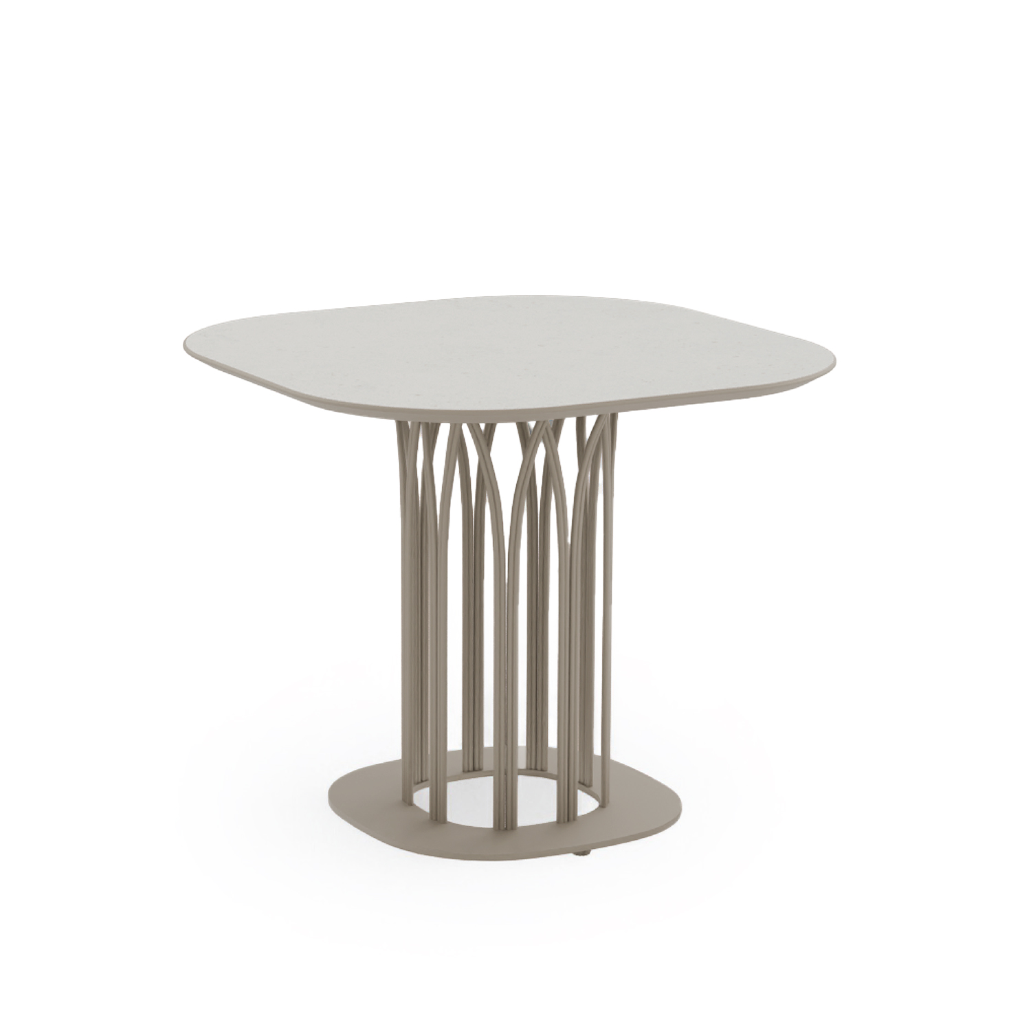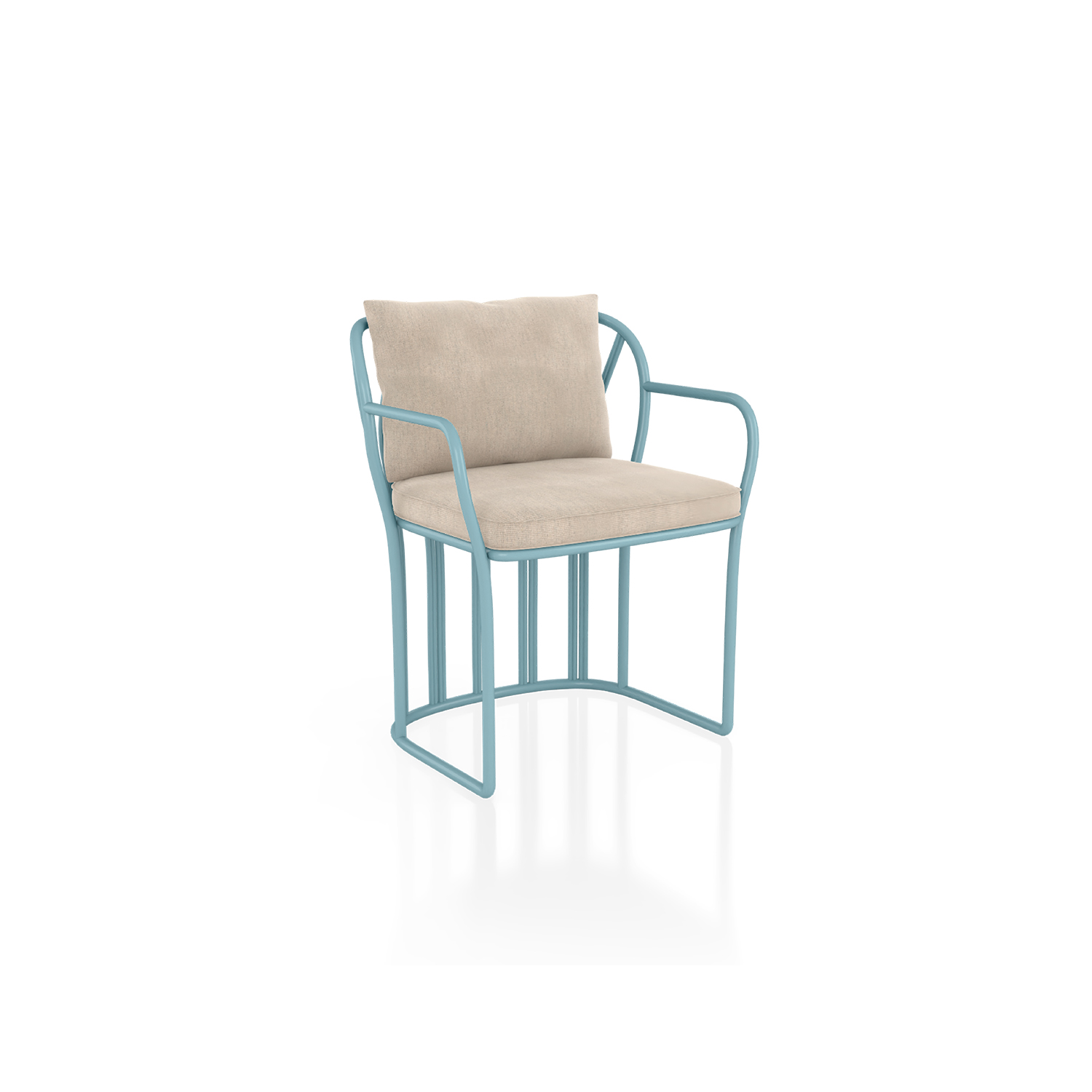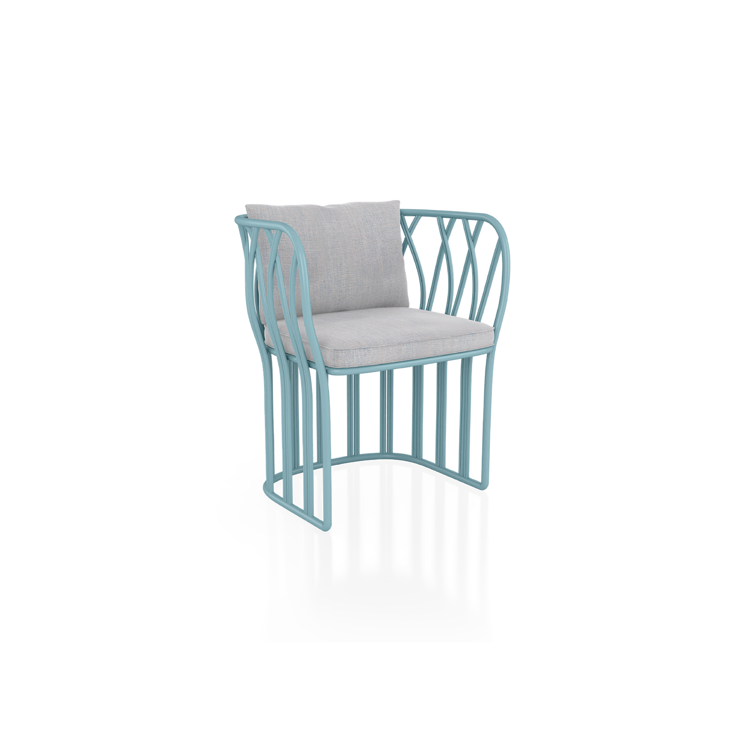 The airy structures are made even more inviting by soft outdoor cushions, which add warmth and comfort to the metal’s rigor. Each piece invites relaxation, transforming outdoor spaces into havens of well-being and conviviality.