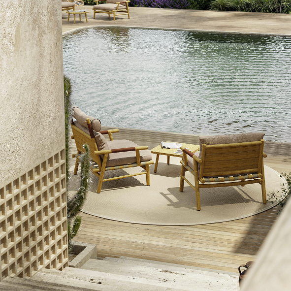 The UZ collection fits naturally into any environment. Well- balanced, aesthetically pleasing, and rich in character, UZ is a furniture collection that thrives both indoors and outdoors, thanks to the richness of the materials used and the timeless quality of its design. Inspired by the geometric form of a cylinder, which has been cleverly interpreted and adapted in height and diameter to meet the functional and structural needs of the collection, each piece emanates a dynamic and strong presence. At the same time, it maintains an elegant, modern aesthetic that can easily integrate into any context.