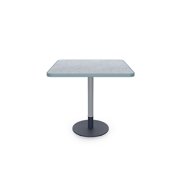 The table leg, which consists of 3 pieces, can be configured with different color combinations. The part that sits on the base is made of heavy-duty stainless material that is resistant to weather conditions. Aluminum, z-pact and paviment alternatives are available for the table.