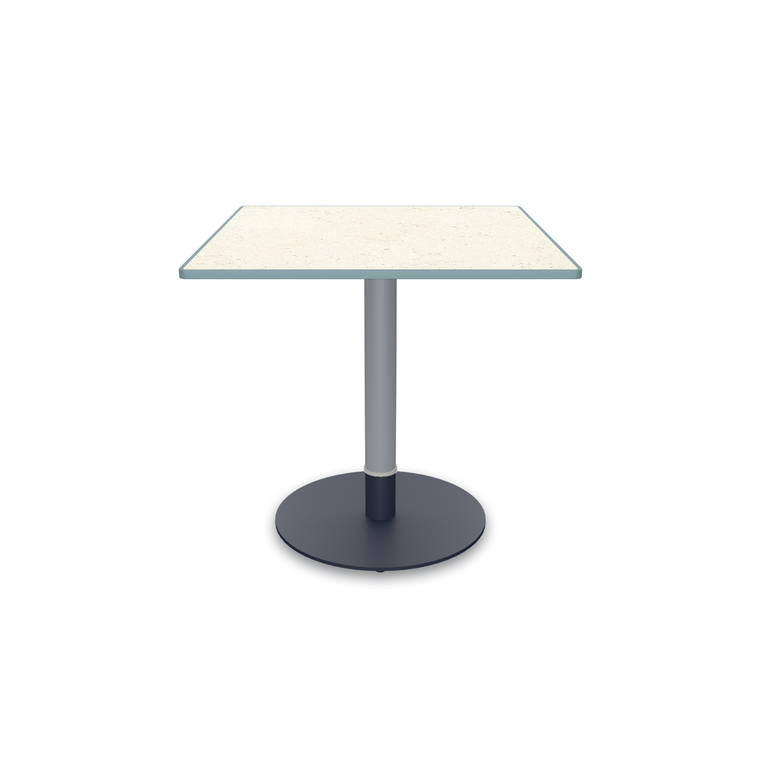 The table leg, which consists of 3 pieces, can be configured with different color combinations. The part that sits on the base is made of heavy-duty stainless material that is resistant to weather conditions. Aluminum, z-pact and paviment alternatives are available for the table.