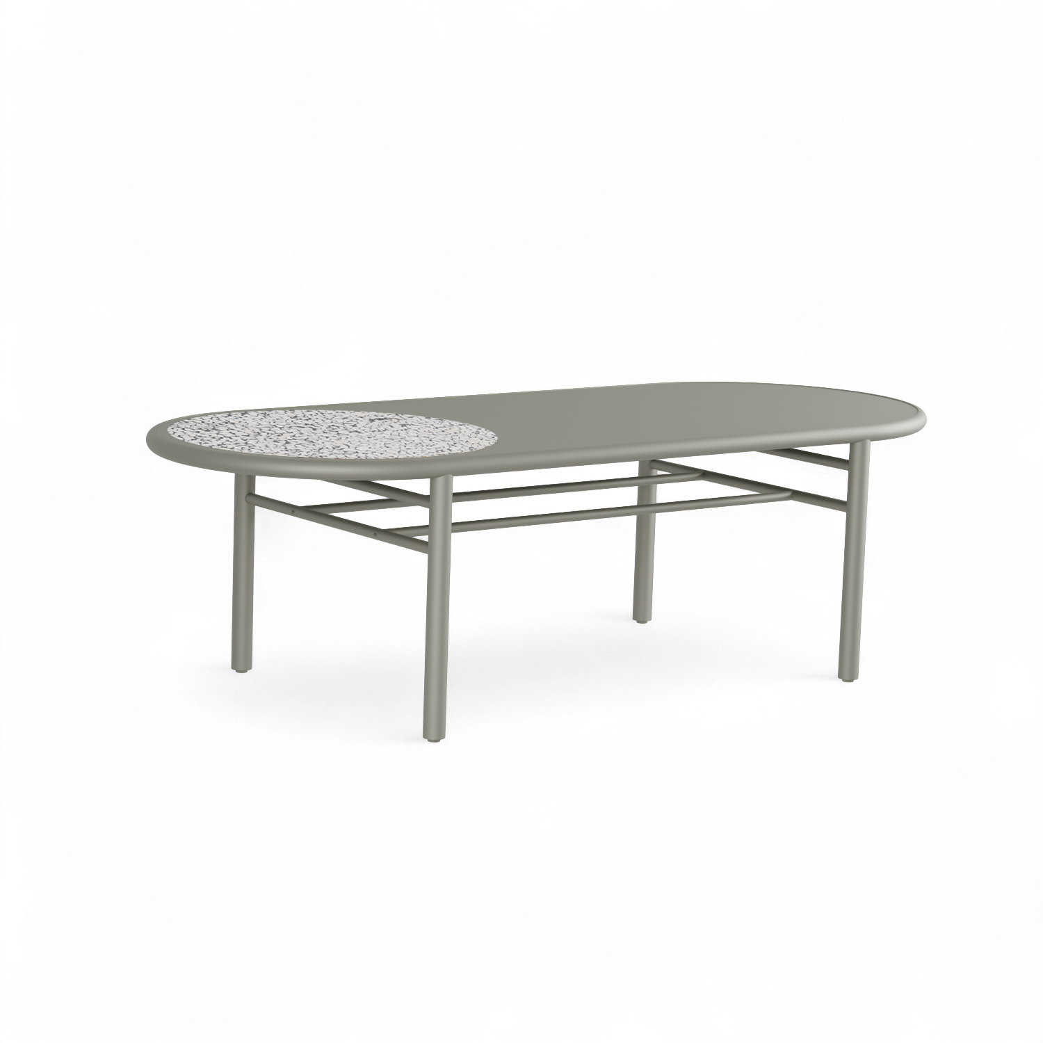 Two aluminum tubes, running always parallel to each other both in straight and in curved sections, define the wide and harmonious profile of the armchair.