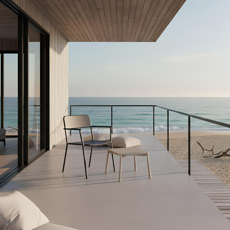 The chairs are made entirely of aluminum. Comfortable, and light, they are suitable for any indoor and outdoor use in private homes and contracts.