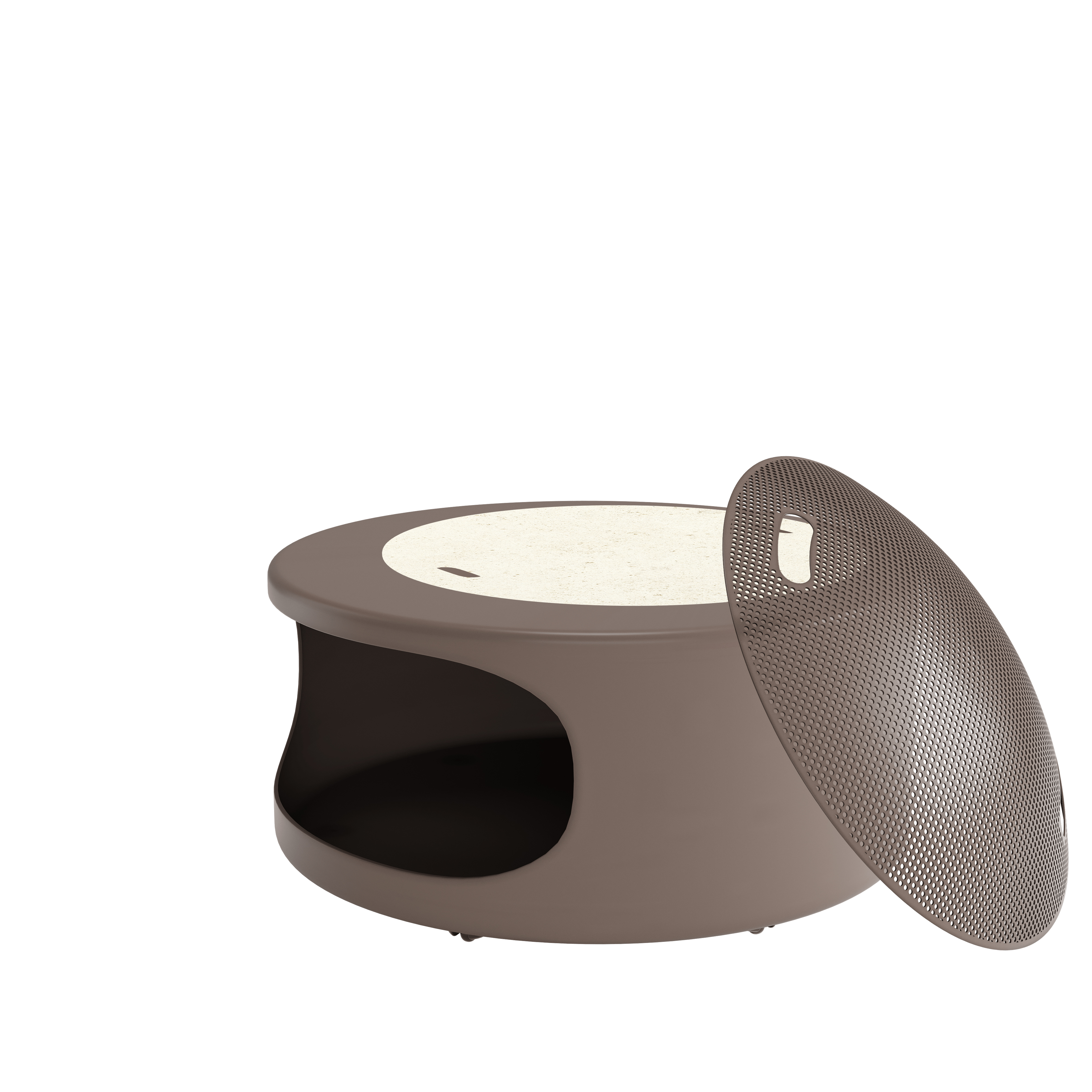 HARR is a garden fire pit with a dome, made of stainless steel.