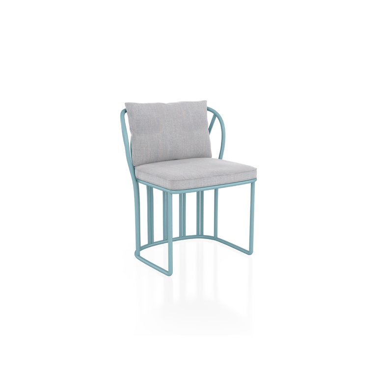 The collection is inspired by vintage wrought-iron garden chairs, where slender metal rodstraced elegant decorative patterns. These light and ethereal shapes gain solidity through