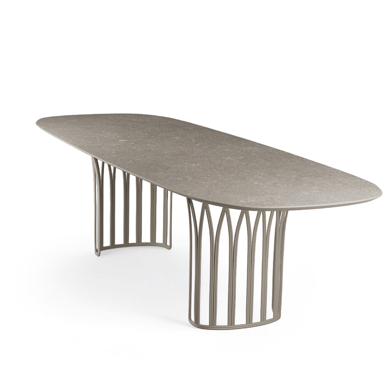 The airy structures are made even more inviting by soft outdoor cushions, which add warmth and comfort to the metal’s rigor. Each piece invites relaxation, transforming outdoor spaces into havens of well-being and conviviality.