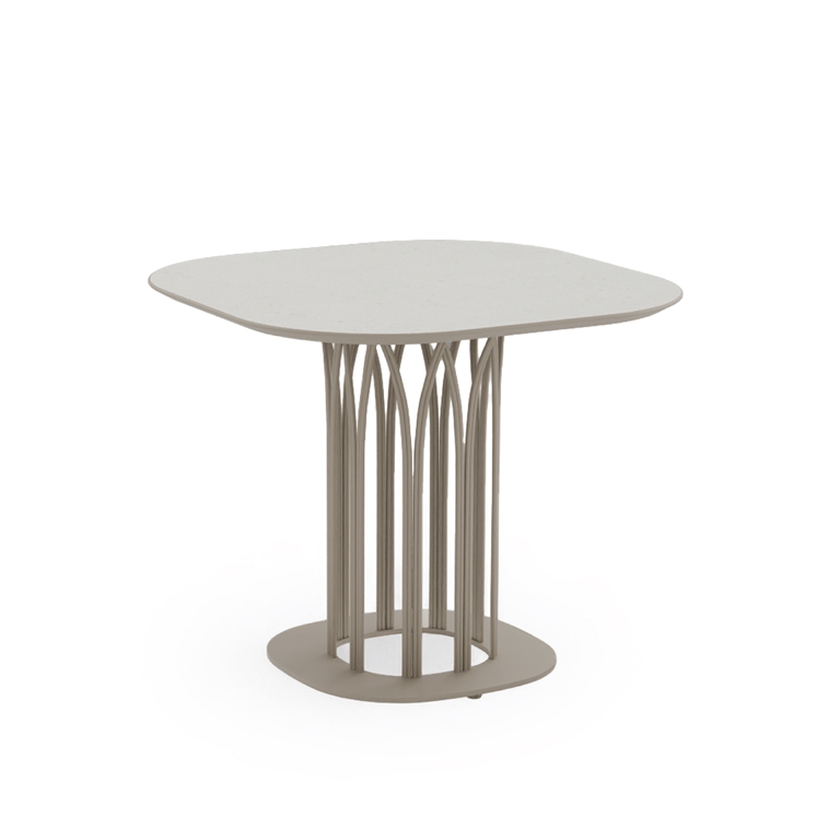 The airy structures are made even more inviting by soft outdoor cushions, which add warmth and comfort to the metal’s rigor. Each piece invites relaxation, transforming outdoor spaces into havens of well-being and conviviality.