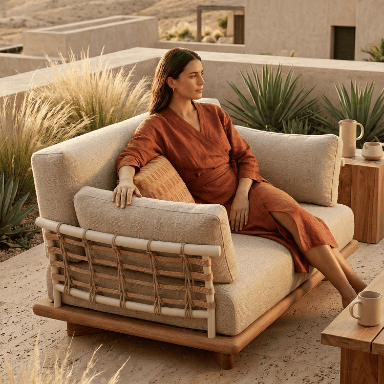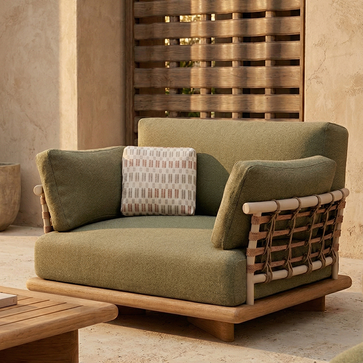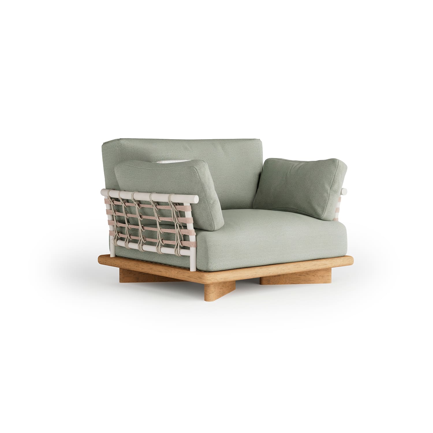 Its structure is made of aluminum and teak, and it is enriched with Yaaz acrylic ropes.