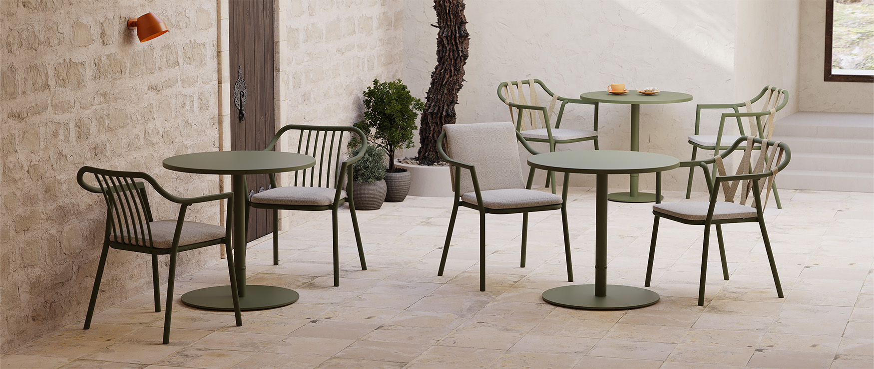The chair, along with other pieces in the collection, provides a versatile space.