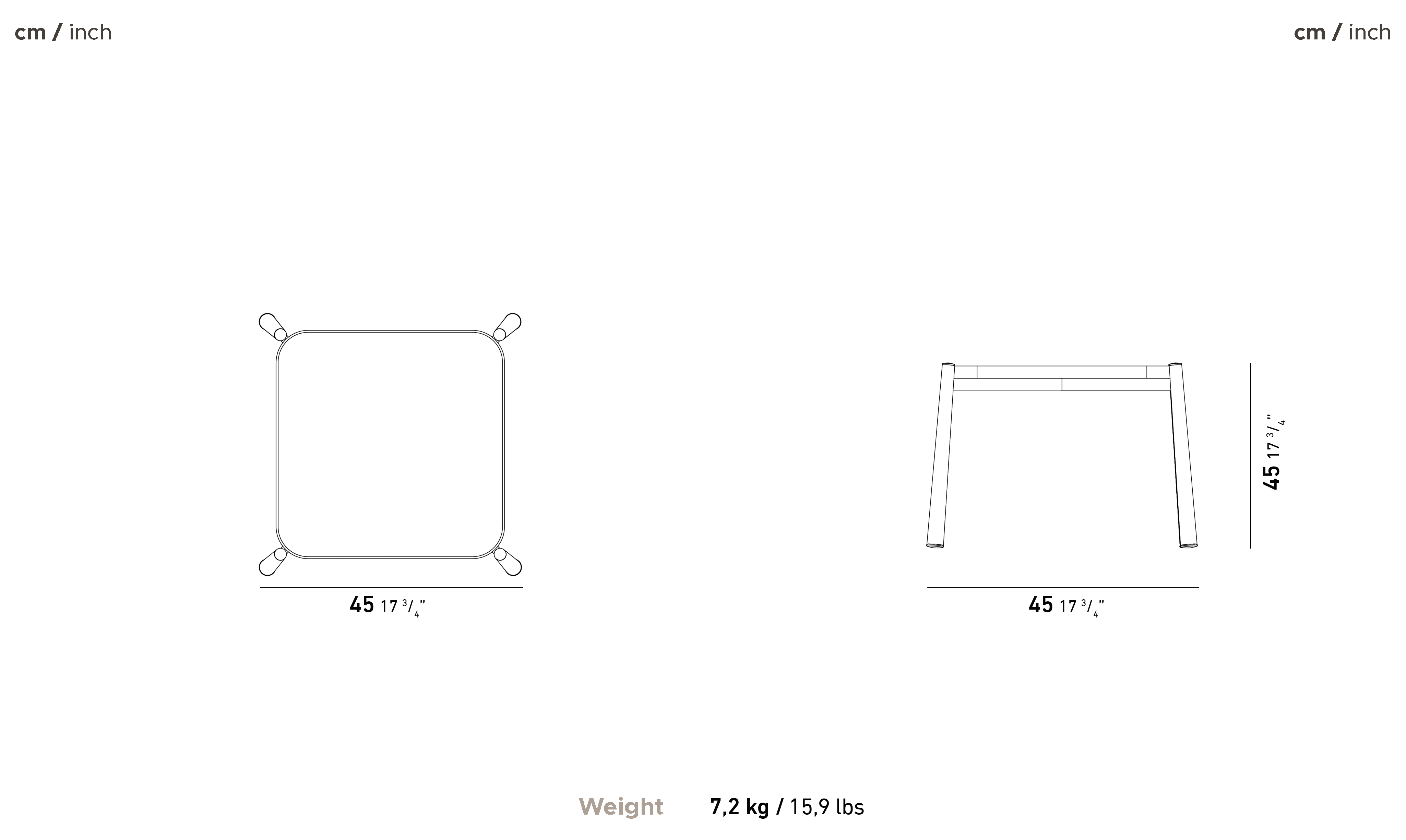 57x57cm (221/2 x221/2 inch) - Ø 57 cm (Ø221/2 inch) and 45x45 (173/4 x173/4 inch) - Ø 45 cm (Ø173/4 inch)