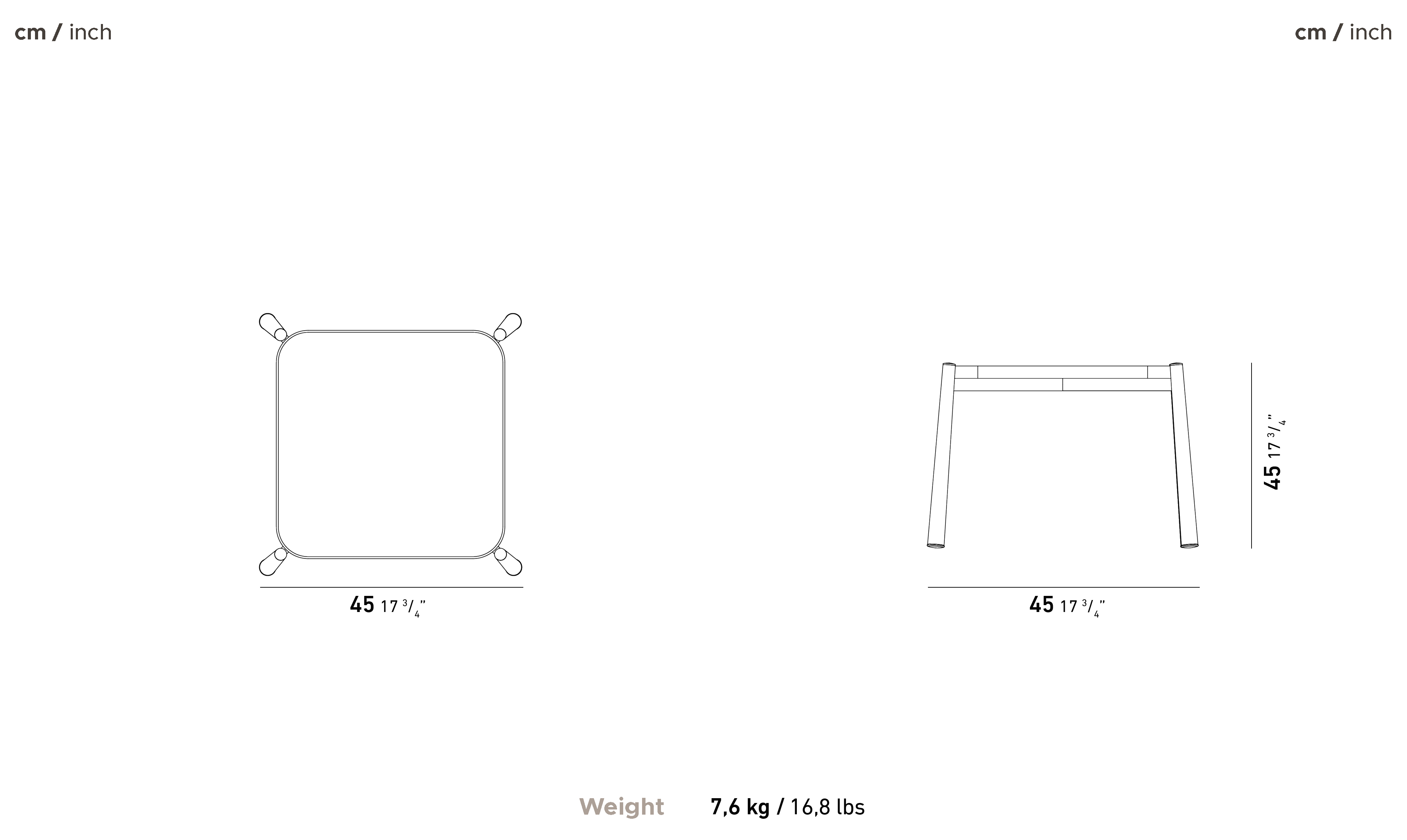 57x57cm (221/2 x221/2 inch) - Ø 57 cm (Ø221/2 inch) and 45x45 (173/4 x173/4 inch) - Ø 45 cm (Ø173/4 inch)