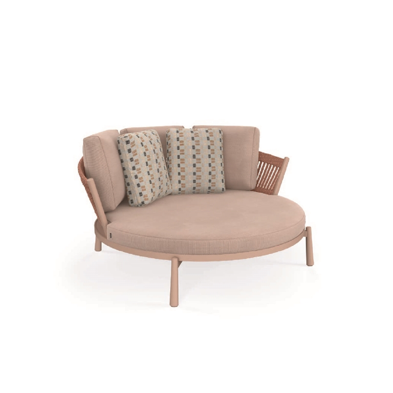 The backrests of the daybed in the TURTLE collection are available in either aluminum or a combination of aluminum and woven ropes.