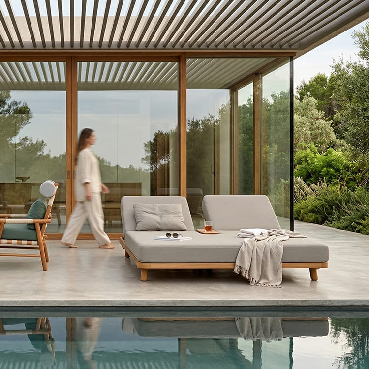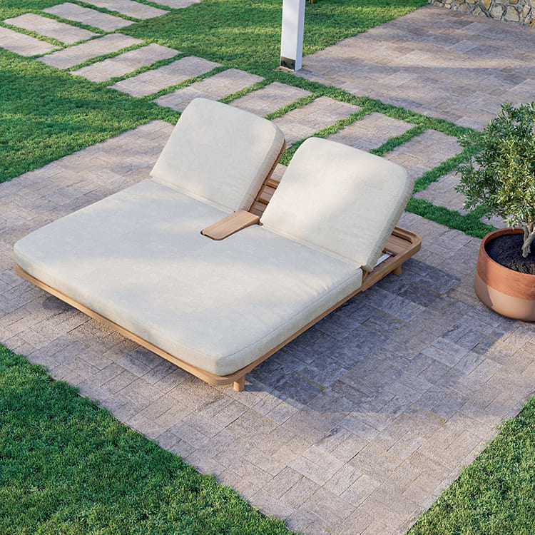 The UZ double sunbed has a structure made entirely of original teak which makes it precious both from a material and functional point of view.