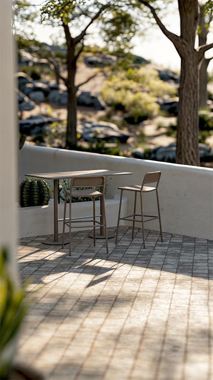 The Anka Table legs, which consist of 3 pieces, can be configured with different color combinations. The part that sits on the base is made of weather-resistant stainless material. The