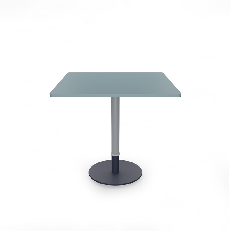 The table leg, which consists of 3 pieces, can be configured with different color combinations. The part that sits on the base is made of heavy-duty stainless material that is resistant to weather conditions. Aluminum, z-pact and paviment alternatives are available for the table.