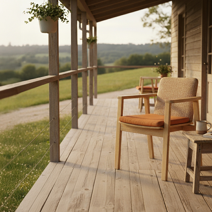 The line includes chairs, armchairs, and sofas in two sizes, all designed to offer ample seating space, perfect for outdoor relaxation. The DENK collection features precise design with timeless allure, where wood, rope, and fabric seamlessly combine style and functionality. It represents the perfect blend of classic teak garden furniture and contemporary form.
