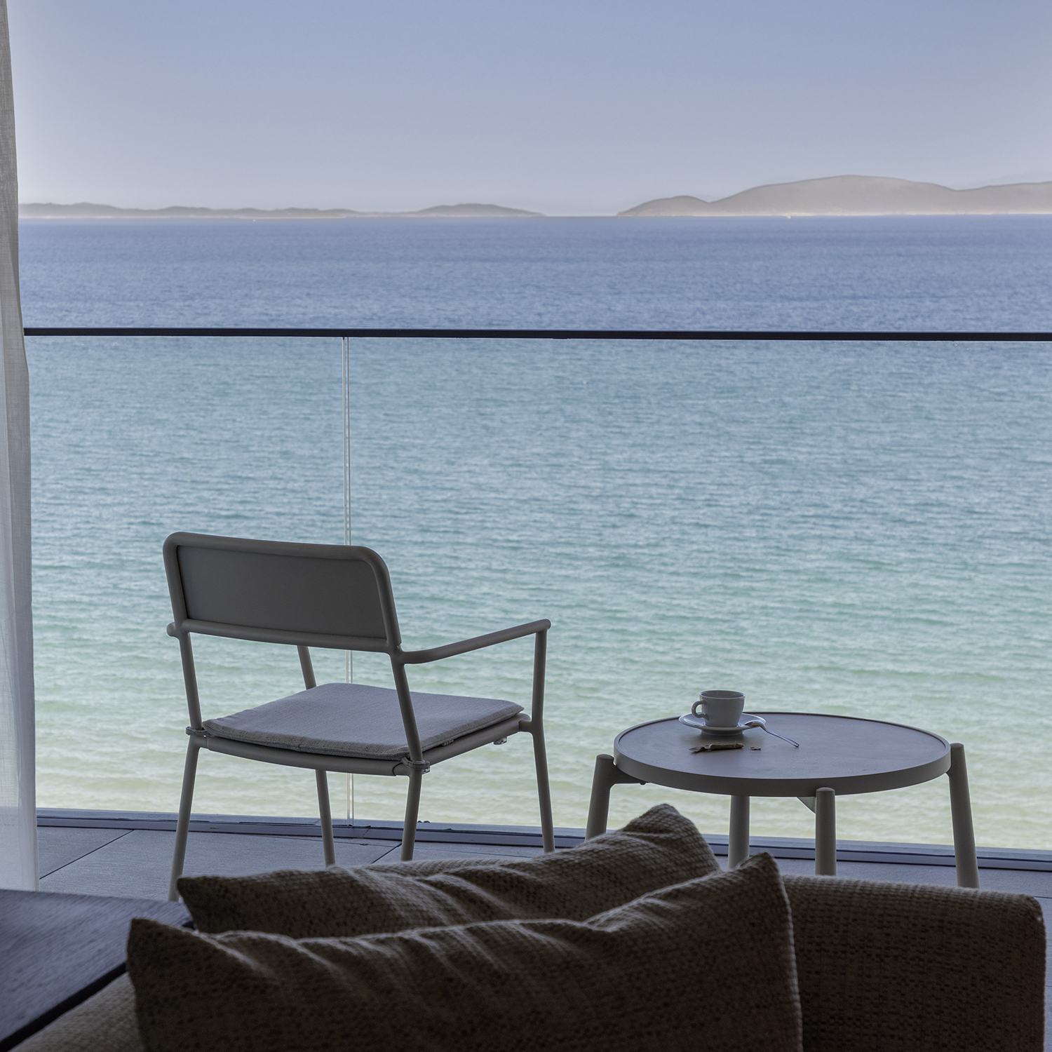 The chairs are made entirely of aluminum. Comfortable, and light, they are suitable for any indoor and outdoor use in private homes and contracts.