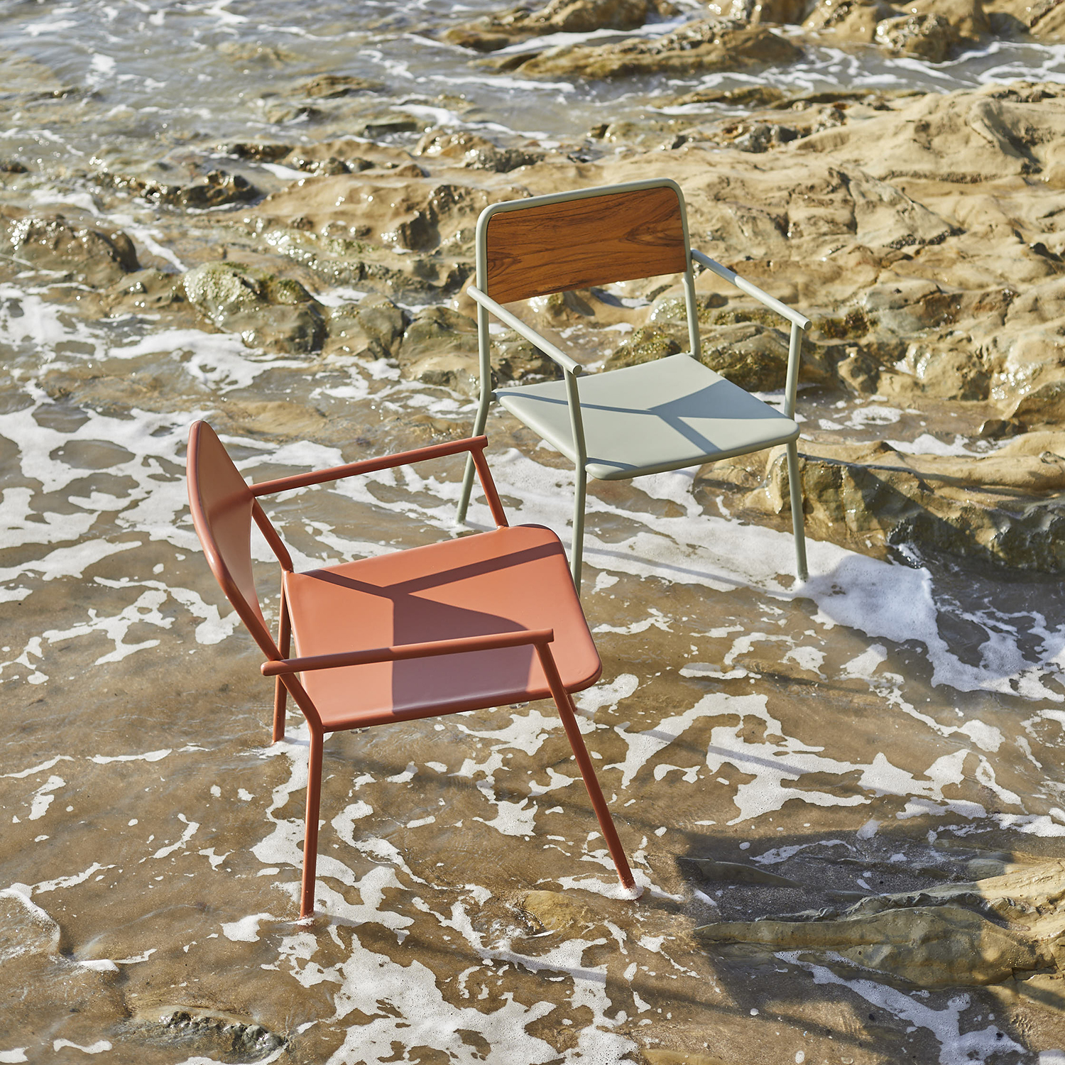 The chairs are made entirely of aluminum. Comfortable, and light, they are suitable for any indoor and outdoor use in private homes and contracts.
