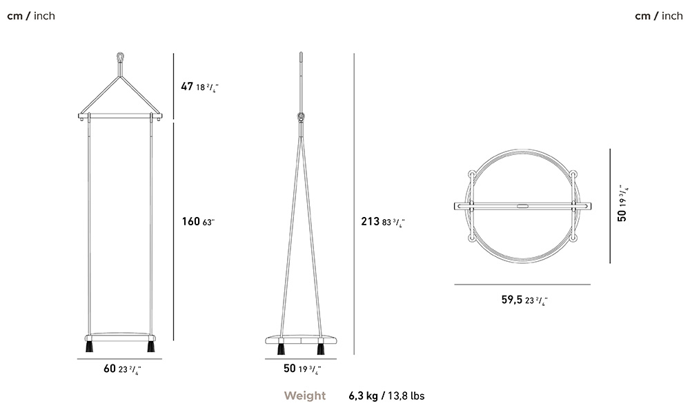 The circular swings HAYAL, resulting from the fortunate encounter between Turkish and Italian traditions and cultures, possess a strong scenic personality while being defined by a linear, almost minimalistic form.