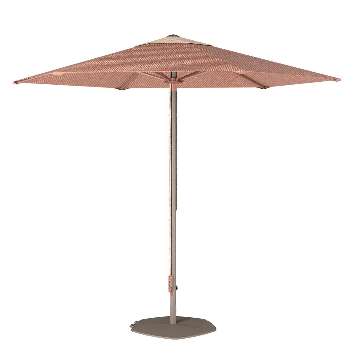 The Urban Base, developed for the Orak Parasol, is designed with understated elegance and crafted from stainless steel. Weighing 45 kg, the base features small wheels for easy mobility.